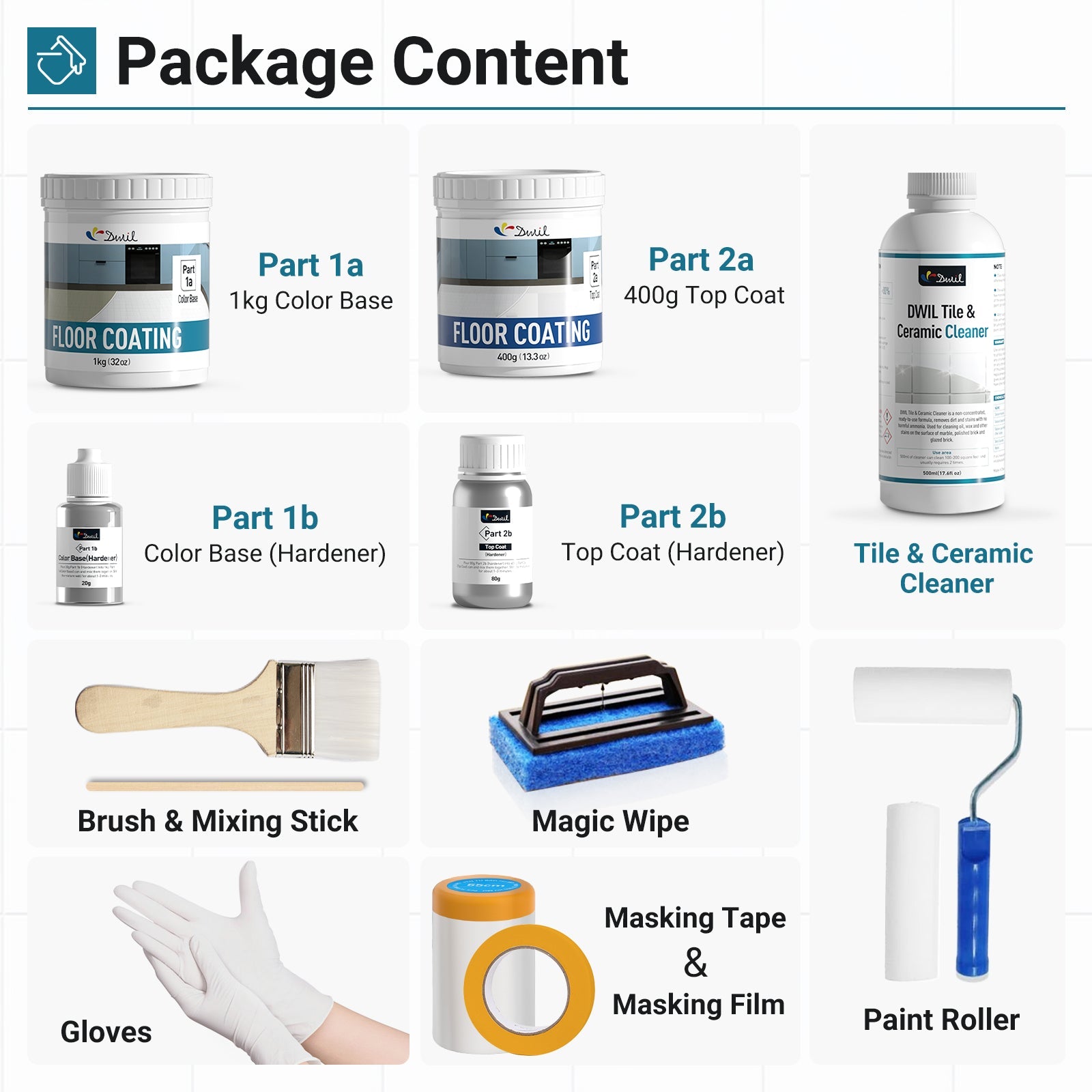 DWIL 地板涂料套装是一款简单的两步系统涂料,旨在提供卓越的附着力、防水性、防滑性和耐用性,可用于翻新旧瓷砖,使其焕然一新。如果您正在寻找这类涂料,DWIL 是您的最佳选择。