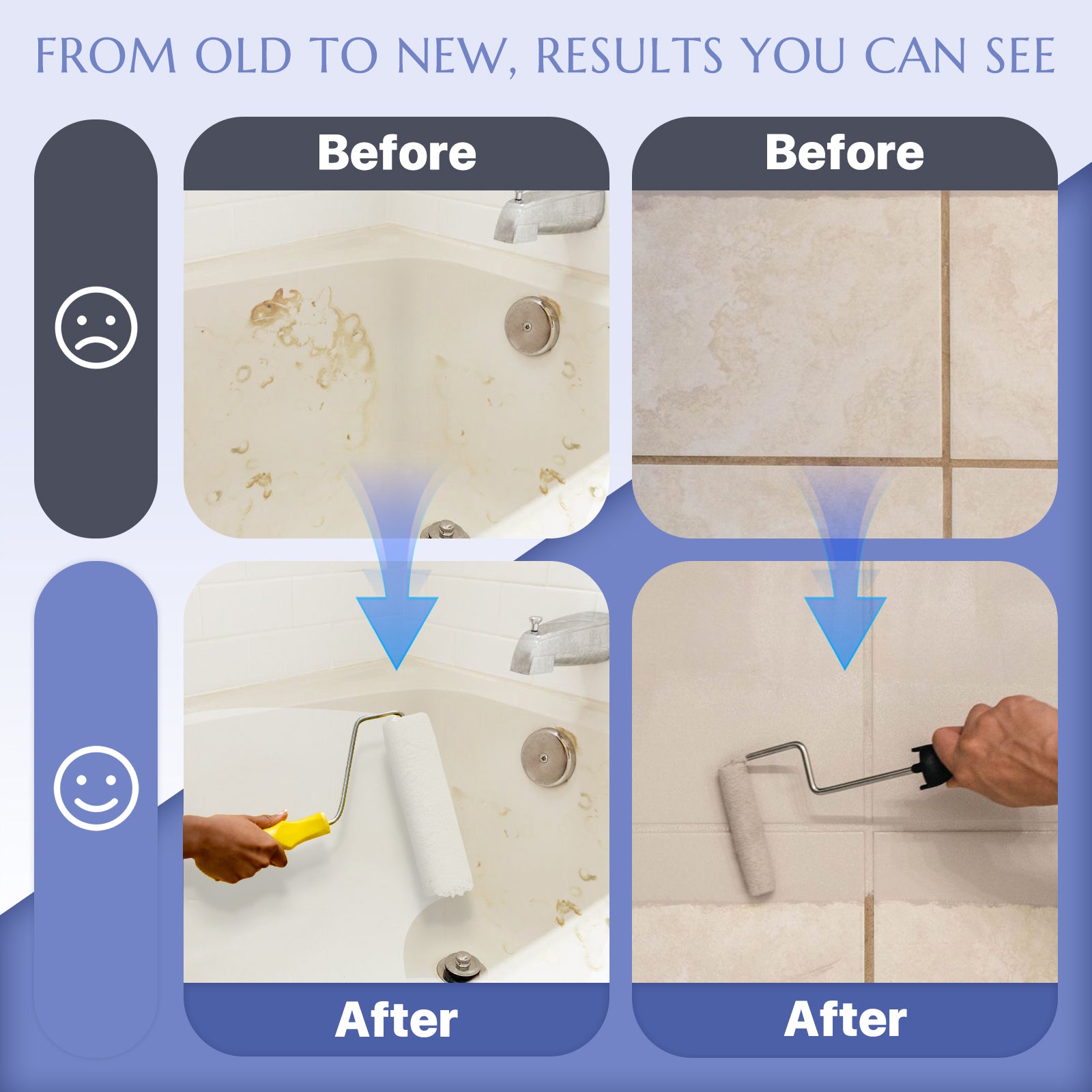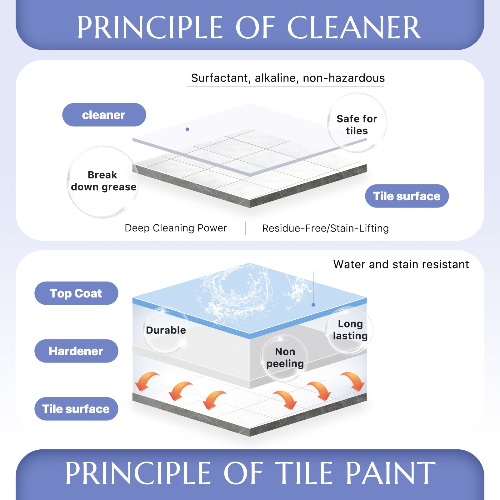 【All-in-One Kit】Our all-inclusive tile refinishing kit is designed to provide everything you need to complete your project with professional results. This tile paint covers 40-50 sq.ft, Cleaner can clean 100-200 sq.ft(We recommend that you use it twice for best results.)