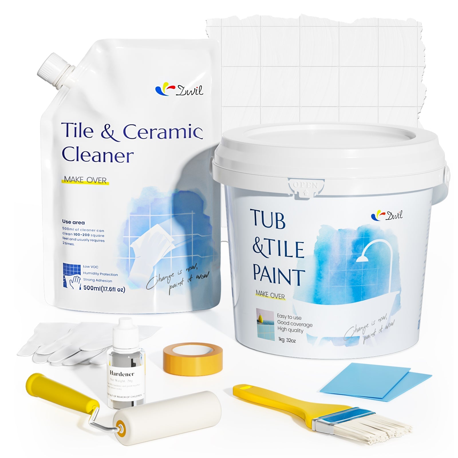 DWIL Tub and Tile Paint (1kg / 32 oz, with Ceramic Cleaner 500ml)