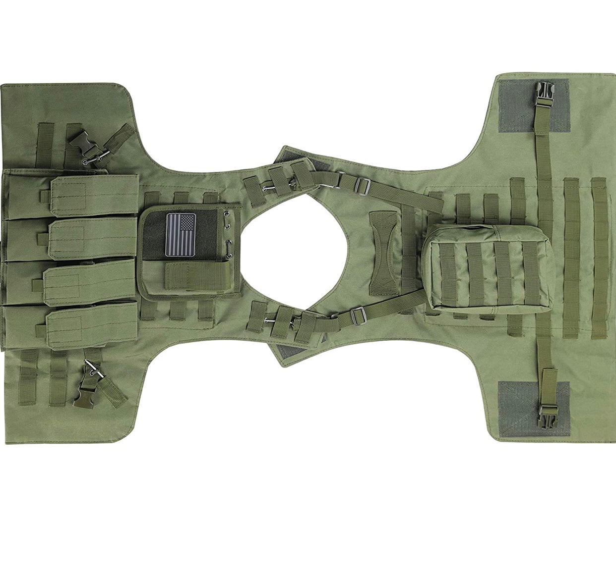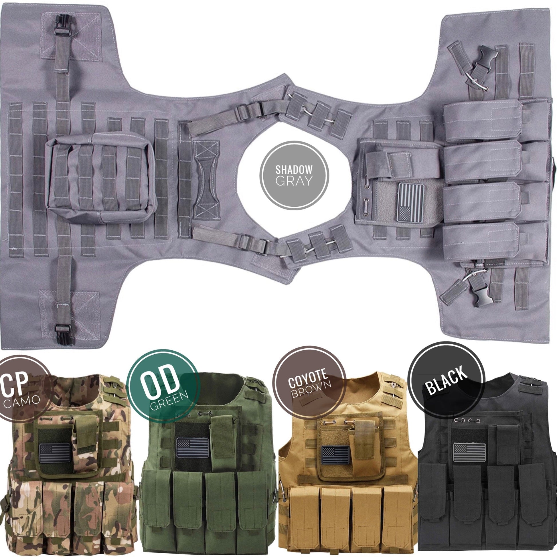 Kids Airsoft Tactical Plate Carrier Vest with Free US Flag Patch, Mil Spec 1000D Nylon PALS Molle Modular w/ 4 Mag Pouches, Side Pouch, Chest Mag Pouch