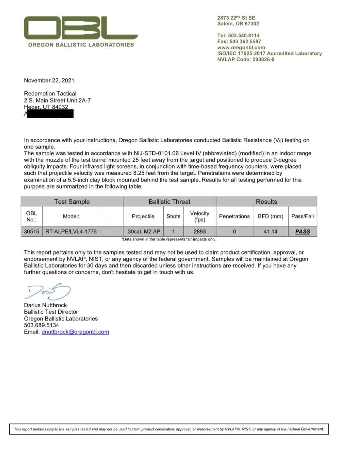 • TESTED TO LEVEL IV: This rated to stop armor piercing rounds up to 30-06 Black Tip Armor Piercing Caliber, and calipers below it which includes 5.56, .223, 7.62x39.
